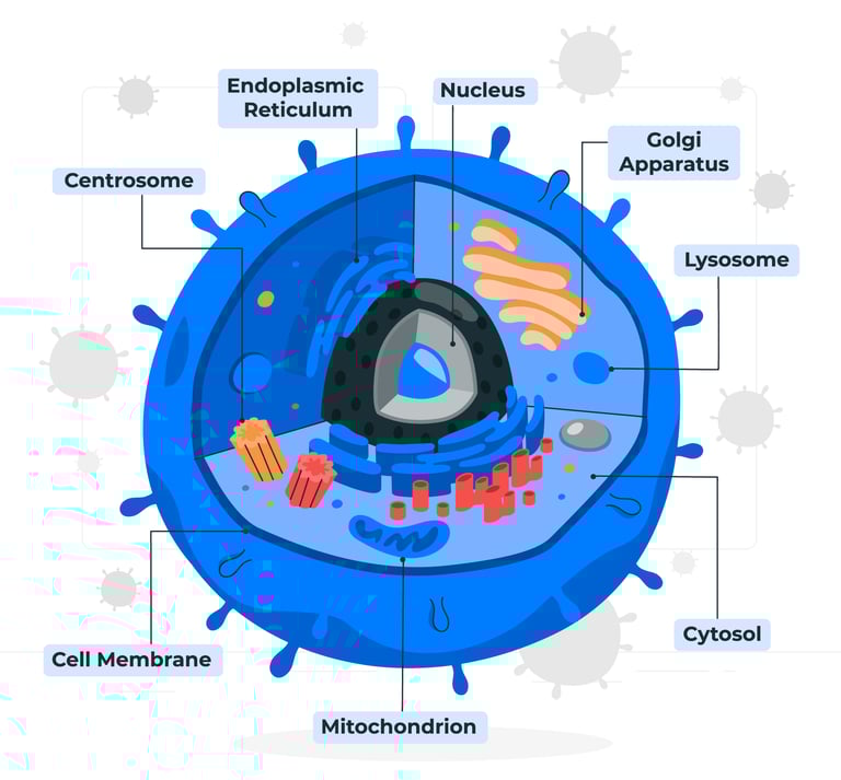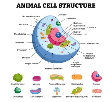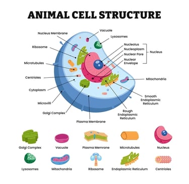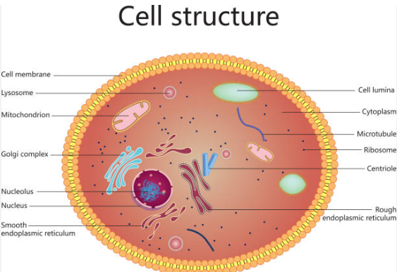• Cell organelles include Endoplasmic Reticulum ,nucleus, Ribosomes, lysosomes , ,Centrioles, Golgi apparatus, Mitochondria, and other Microtubule structure .