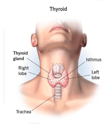 Thyroid gland is a butterfly shaped organ located in front of the neck.